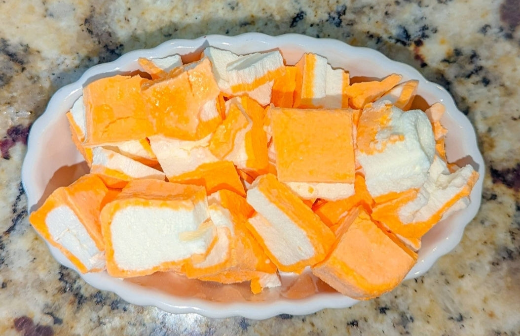 Freeze dried Orange Creamsicle. This crunchy ice cream treat is packed full of flavor. Enjoy snacking without the mess.